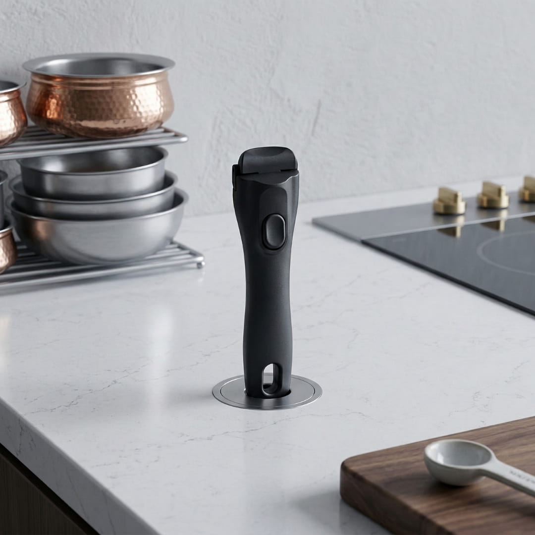 ✅ Universal Fit – Works with all pots, pans, and baking trays. One handle for your entire kitchen.